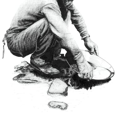 Shorty and I carefully panned out our sweepings and concentrates with water. After weighing our finds, the result was astounding. Shorty had more than 2.5 OUNCES of raw gold from that canyon. I came up with around half a gram! Whether he could "smell" it or not, I had to concede that in finding gold Shorty was by far the better man!